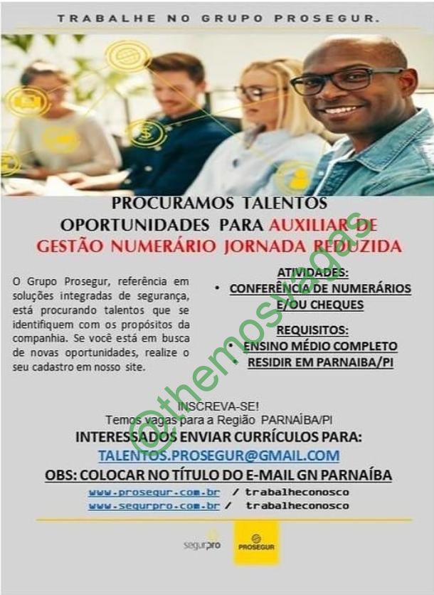 – Interessados(as) e que atendam aos requisitos devem enviar o perfil profissional, colocando no título do e-mail “GN Parnaíba”, para:  talentos.prosegur@gmail.com