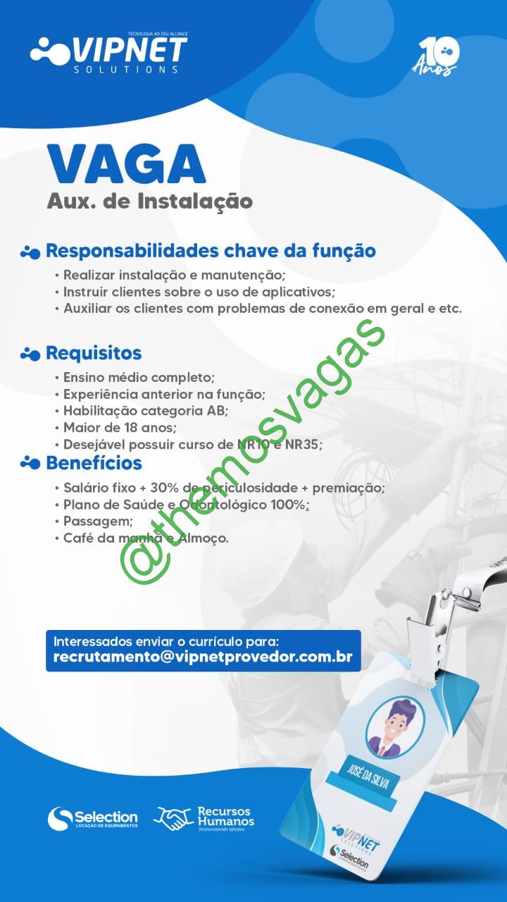 –  Interessados(as) e que atendam ao perfil solicitado acima, devem enviar o currículo para o e-mail recrutamento@vipnetprovedor.com.br, contendo no titulo/assunto “Auxiliar de Instalação – FOR