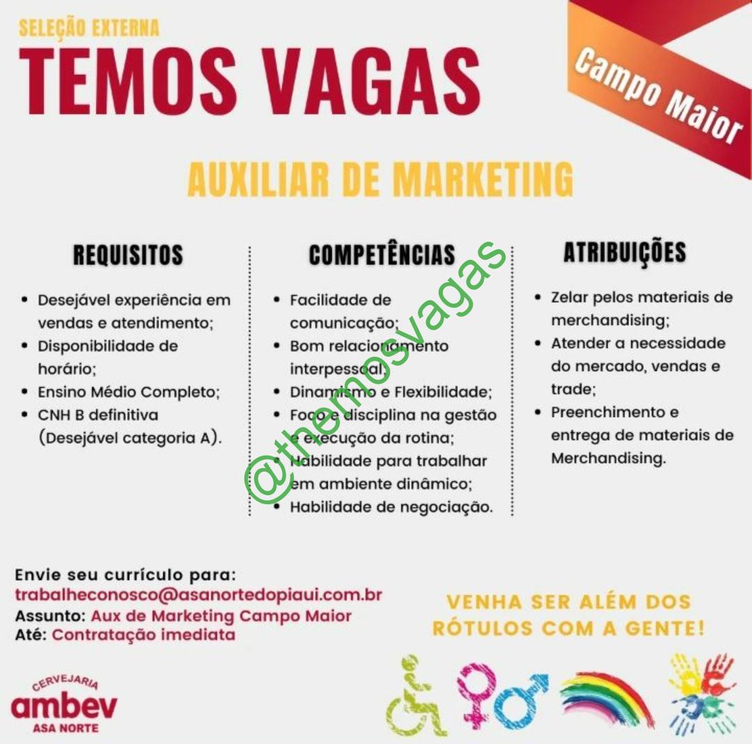 Auxiliar de Marketing | Campo Maior – PI | 01 vaga(s)