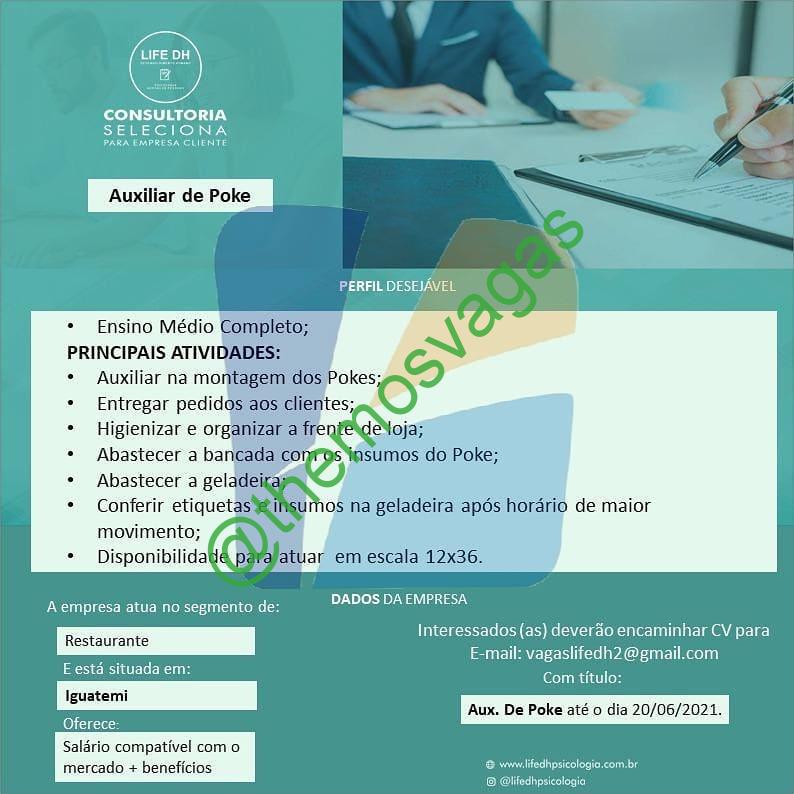 – Interessados(as) e que atendam ao perfil solicitado acima, devem enviar o currículo até 20/06/2021 para o e-mail vagaslifedh2@gmail.com, contendo no título/assunto “Auxiliar de Poke – FOR“.