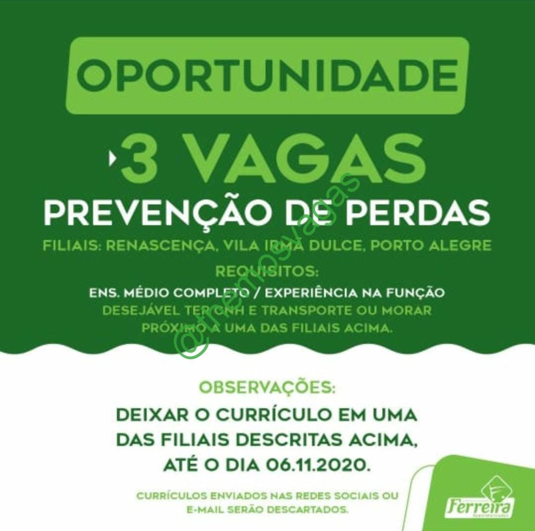 – Interessados(as) e que atendam ao perfil solicitado acima, devem entregar o currículo até 06/11/2020 em uma das Filiais do Ferreira Supermercado (Renasceça, Vila Irmã Dulce, Porto Alegre)