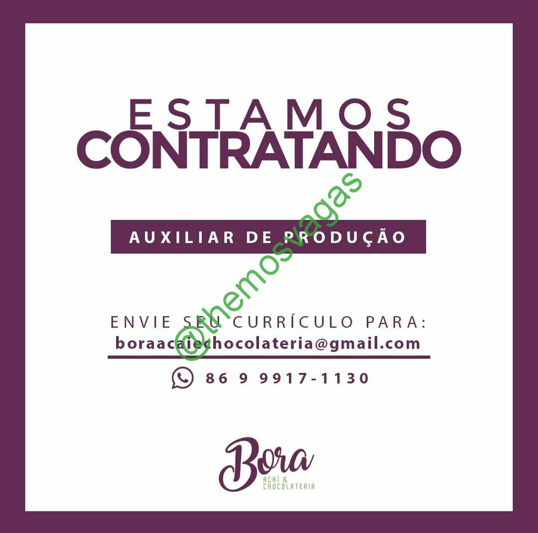– Interessados(as) e que atendam ao perfil solicitado acima, devem enviar o currículo para o e-mail boraacaiechocolateria@gmail.com, contendo no título/assunto “Auxiliar de Produção – PHB“ ou através do telefone/whatsapp (86) 99917-1130.