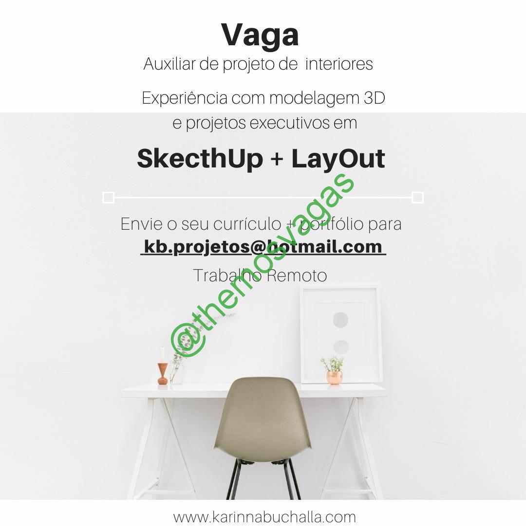 – Interessados(as) e que atendam ao perfil solicitado acima, devem enviar o currículo + portfólio para o e-mail kb.projetos@hotmail.com contendo no título/assunto “Auxiliar de Projetos THE