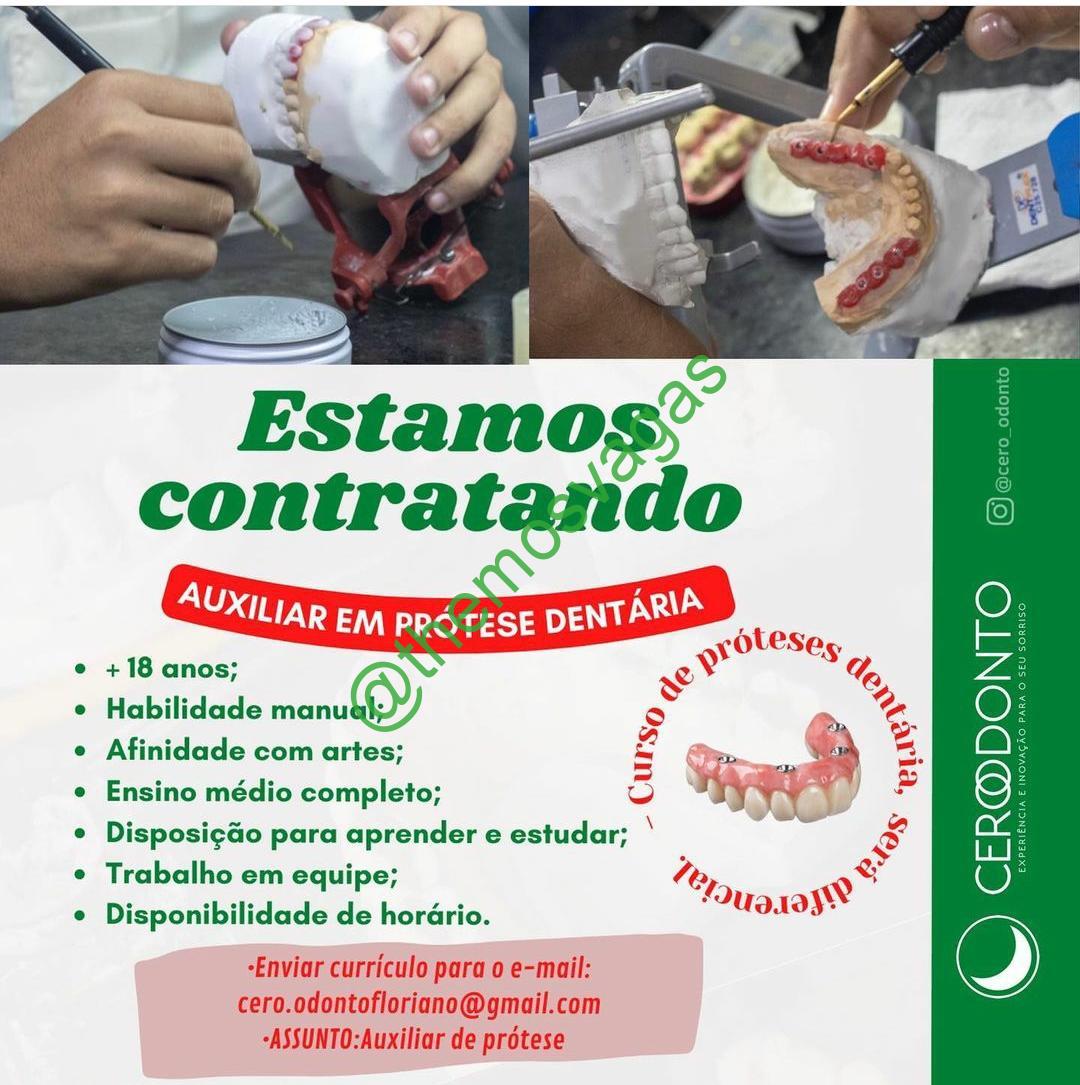 – Interessados(as) e que atendam ao perfil solicitado acima, devem enviar o currículo  para o e-mail cero.odontofloriano@gmail.com contendo no título/assunto “Auxiliar de Protese Dentária – Floriano