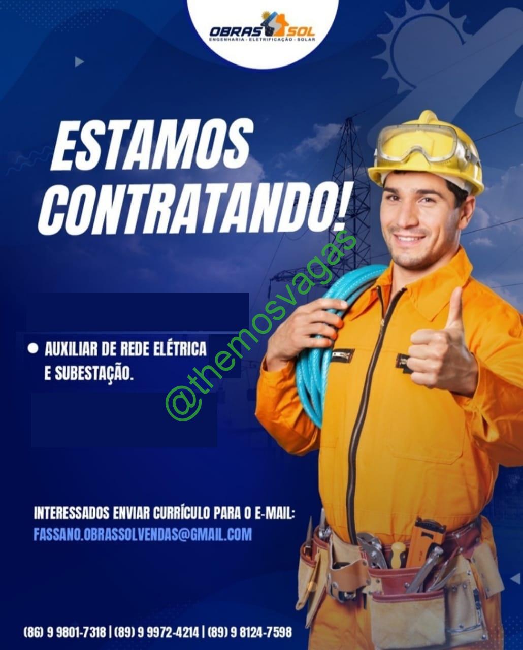 – Interessados(as) e que atendam ao perfil solicitado acima, devem enviar o currículo para o e-mail fassano.obrassolvendas@gmail.com contendo no título/assunto “Auxiliar de Rede Elétrica e Subestação | Picos