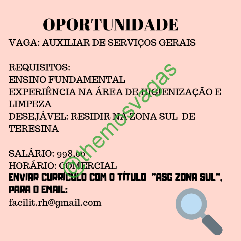 Auxiliar de Serviços Gerais / 01 vaga(s) / Teresina – PI