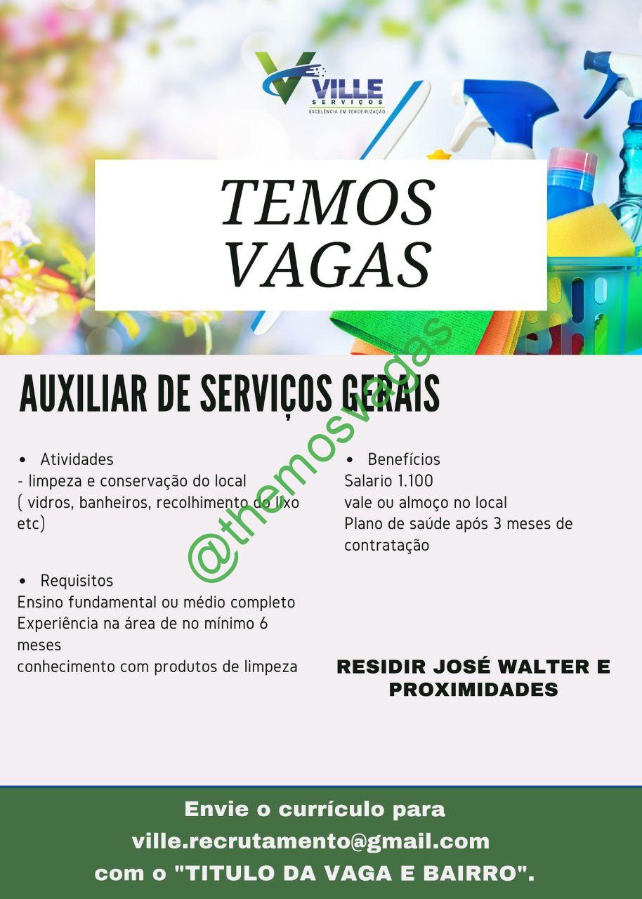 – Interessados(as) e que atendam ao perfil solicitado acima, devem enviar o currículo para o e-mail ville.recrutamento@gmail.com, contendo no título/assunto “Auxiliar de Serviços Gerais FOR“.