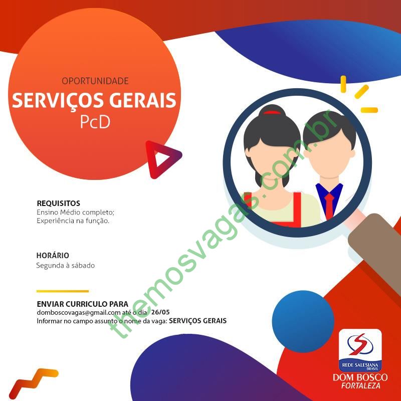 – Interessados(as) e que atendam ao perfil solicitado acima, devem enviar o currículo para o e-mail domboscovagas@gmail.com até o dia  26/05/2019, colocando no título “Serviços Gerais”.