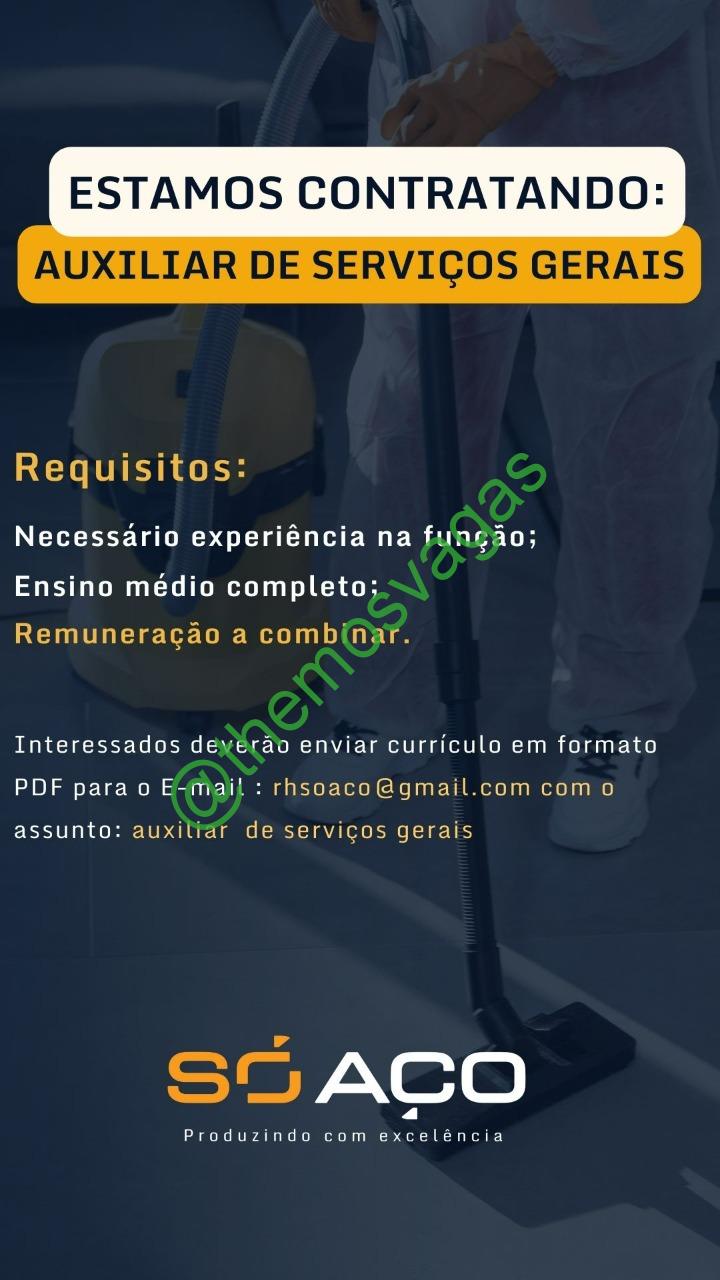– Interessados(as) e que atendam ao perfil solicitado acima, devem enviar o currículo em formato PDF para o e-mail rhsoaco@gmail.com contendo no título/assunto “Auxiliar de Serviços Gerais“.