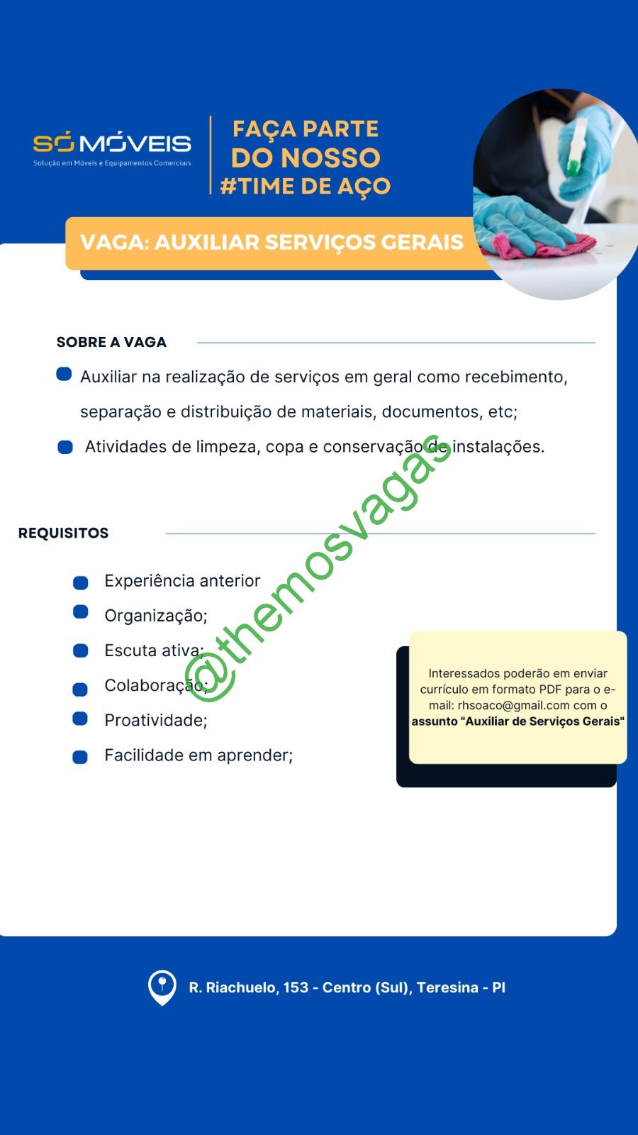 Auxiliar de Serviços Gerais | Teresina – PI | 01 vaga(s)