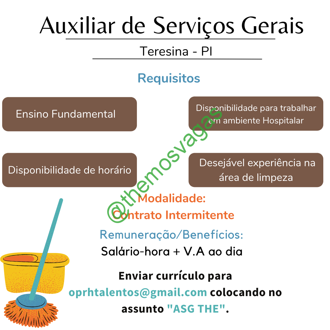 Auxiliar de Serviços Gerais | Teresina – PI | 01 vaga(s)