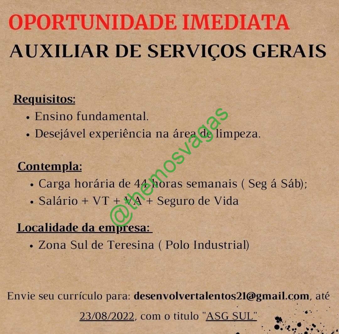 Auxiliar de Serviços Gerais | Teresina – PI | 01 vaga(s)
