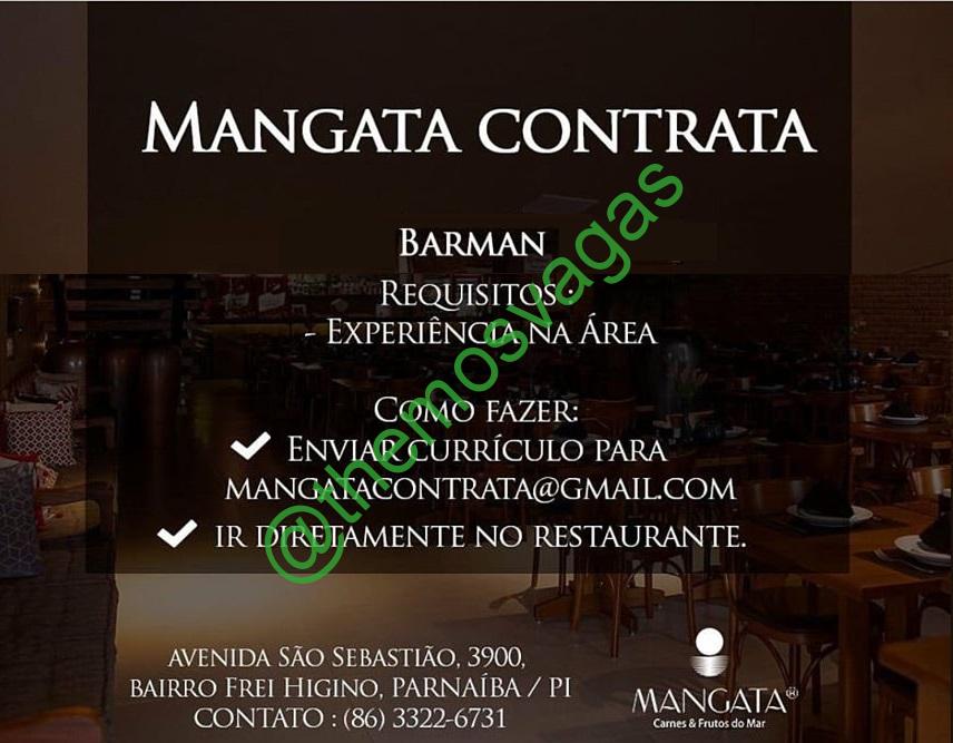 – Interessados(as) e que atendam ao perfil solicitado acima, devem enviar o currículo  para o e-mail mangatacontrata@gmail.com contendo no título/assunto “Barman” ou entregar na Avenida São Sbastião, 3900 – Frei Higino – Parnaíba/PI