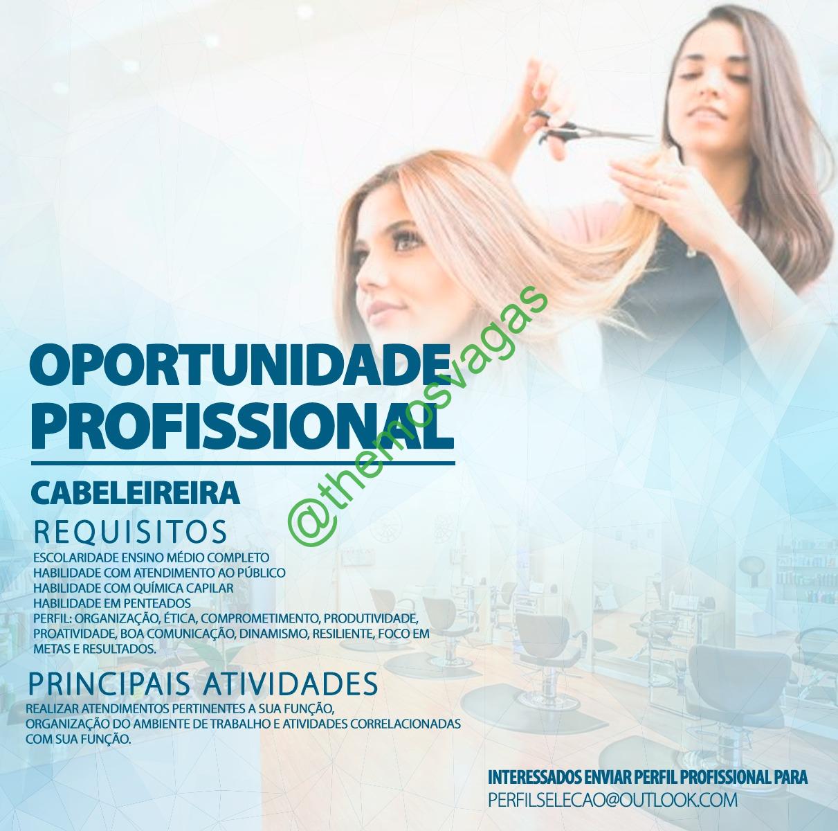 – Interessados(as) e que atendam ao perfil solicitado acima, devem enviar o currículo para o e-mail perfilselecao@outlook.com contendo no título/assunto “Cabeleireira THE