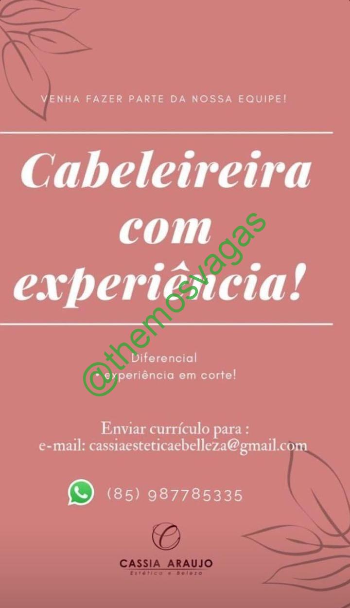 – Interessados(as) e que atendam ao perfil solicitado acima, devem enviar o currículo para o e-mail cassiaesteticaebelleza@gmail.com, contendo no título/assunto “Cabeleireira – FOR”.