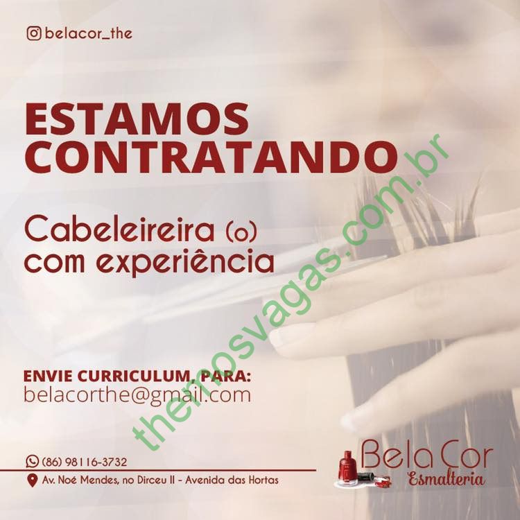 Interessados(as) e que atendam aos requisitos devem enviar o perfil profissional, colocando no título do e-mail “Cabeleireiro(a)”, para: belacorthe@gmail.com