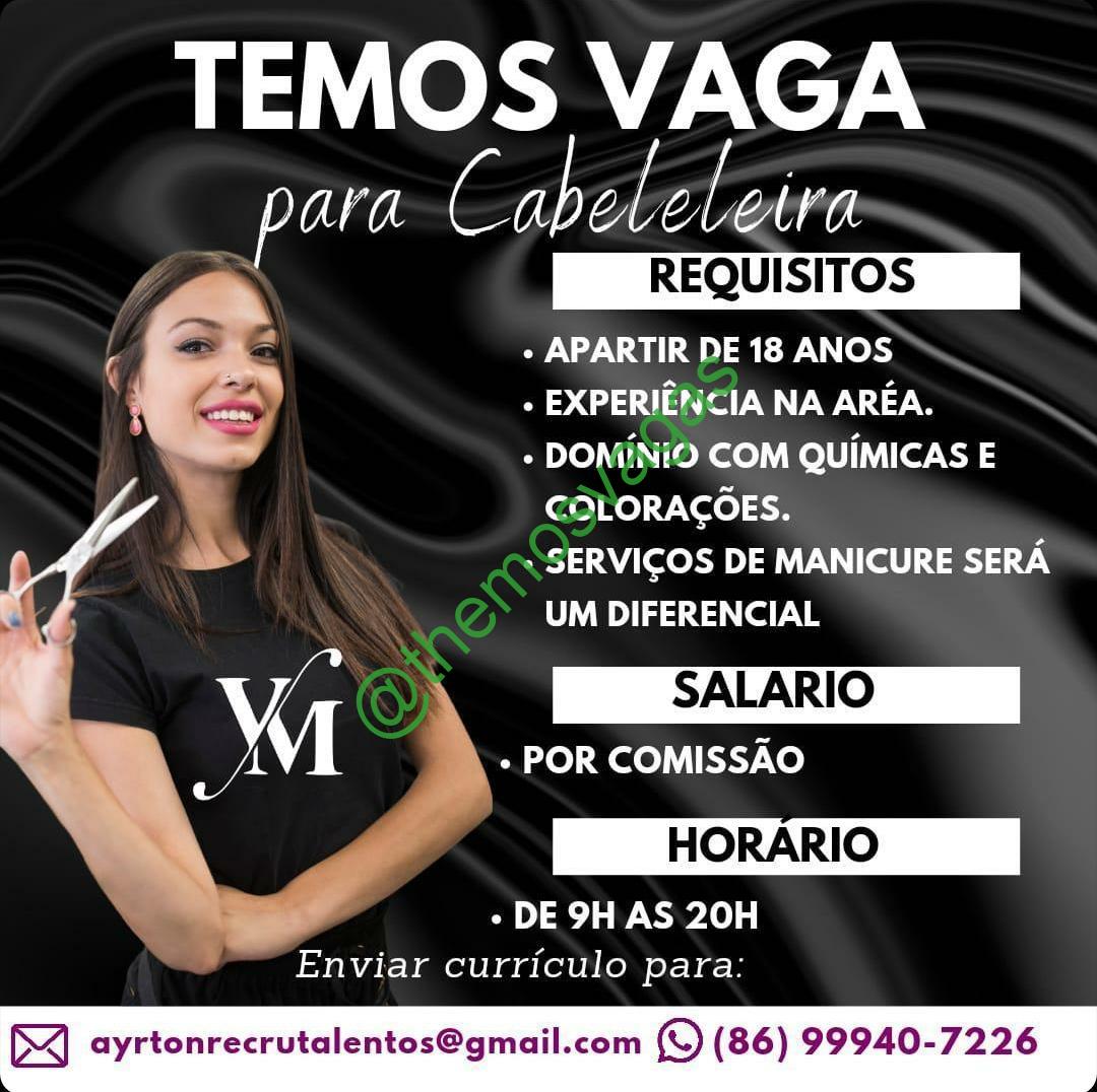 – Interessados(as) e que atendam ao perfil solicitado acima, devem enviar o currículo para o e-mail ayrtonrecrutalentos@gmamil.com, contendo no título/assunto “Cabelereira – THE“ ou para o telefone/what (86) 99407226.