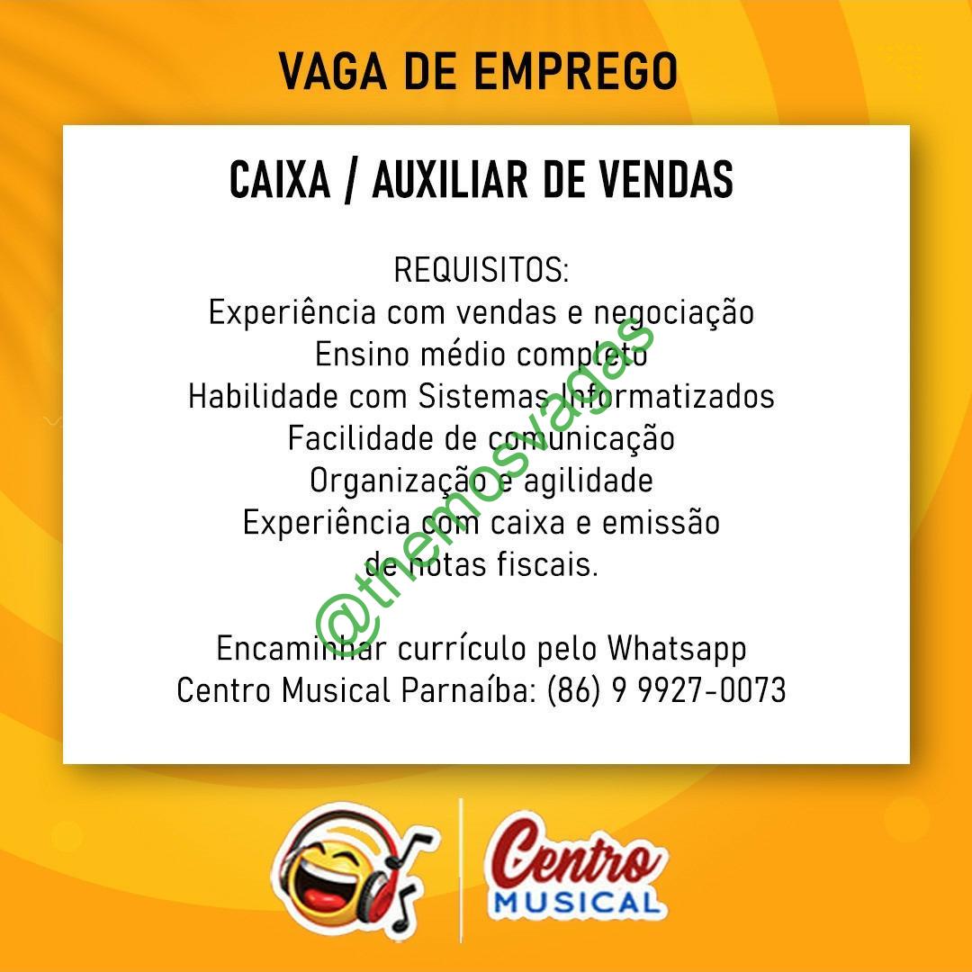 – Interessados(as) e que atendam ao perfil solicitado acima, devem enviar o currículo através do whatsapp 86 9927-0073 informando que pretende concorrer para a vaga de “Caixa“.