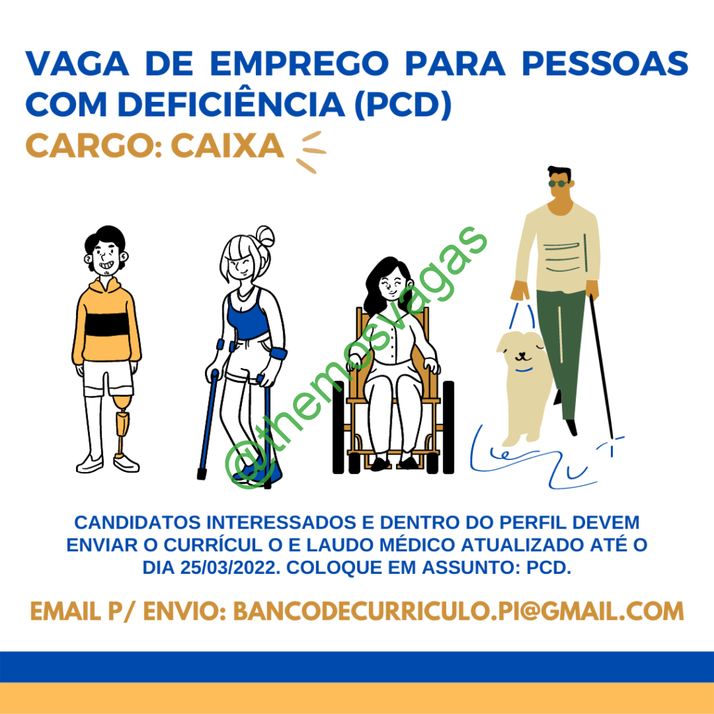 – Interessados(as) e que atendam ao perfil solicitado acima, devem enviar o currículo até 25/03/2022  para o e-mail bancodecurriculo.pi@gmail.com contendo no título/assunto “PCD