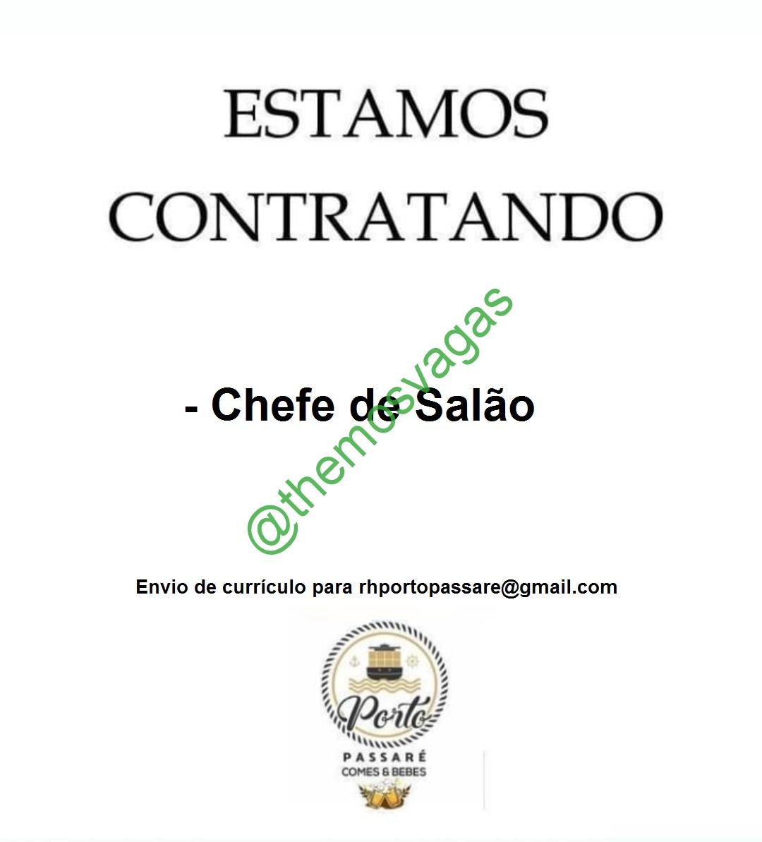 – Interessados(as) e que atendam ao perfil solicitado acima, devem enviar o currículo para o e-mail rhportopassare@gmail.com, contendo no titulo/assunto “Chefe de Salão- FOR