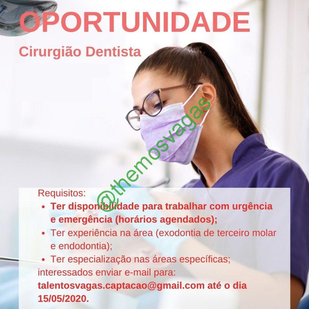 – Interessados(as) e que atendam ao perfil solicitado acima, devem enviar o currículo até 15/05/2020 para o e-mail talentosvagas.captacao@gmail.com contendo no título/assunto “Cirurgião Dentista THE