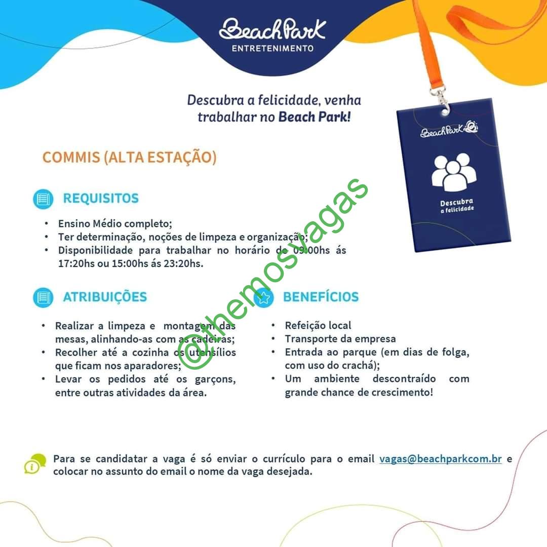 – Interessados(as) e que atendam ao perfil solicitado acima, devem enviar o currículo para o e-mail vagas@beachpark.com.br, contendo no titulo/assunto “Commis FOR