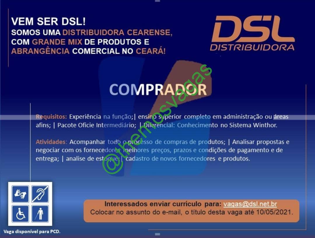 – Interessados(as) e que atendam ao perfil solicitado acima, devem enviar o currículo até 10/05/2021 para o e-mail vagas@dsl.net.br, contendo no título/assunto “Comprador – FOR“.
