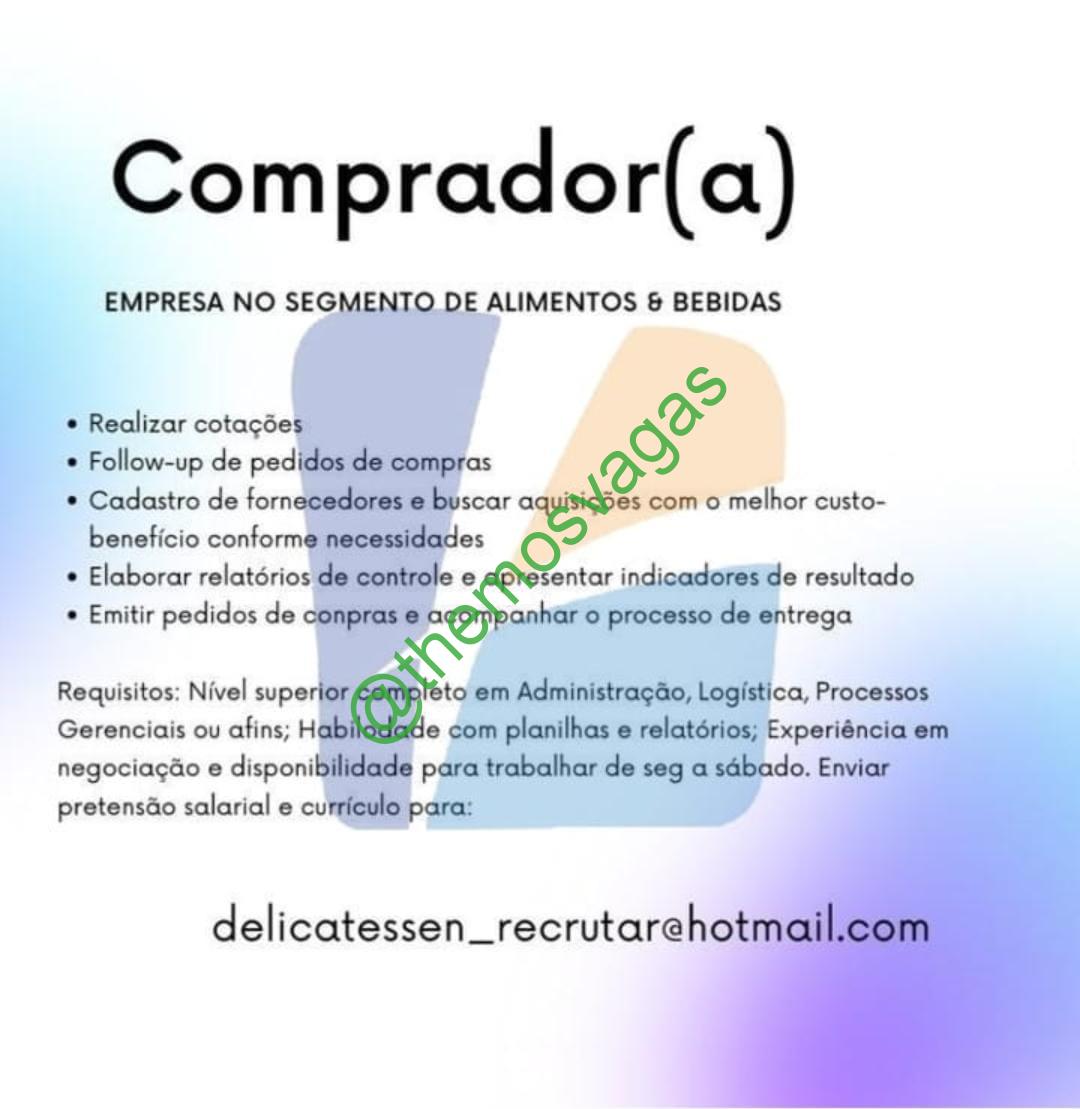 –  Interessados(as) e que atendam ao perfil solicitado acima, devem enviar o currículo para o e-mail delicatessen_recrutar@hotmail.com , contendo no título/assunto “Comprador(a) – FOR”.