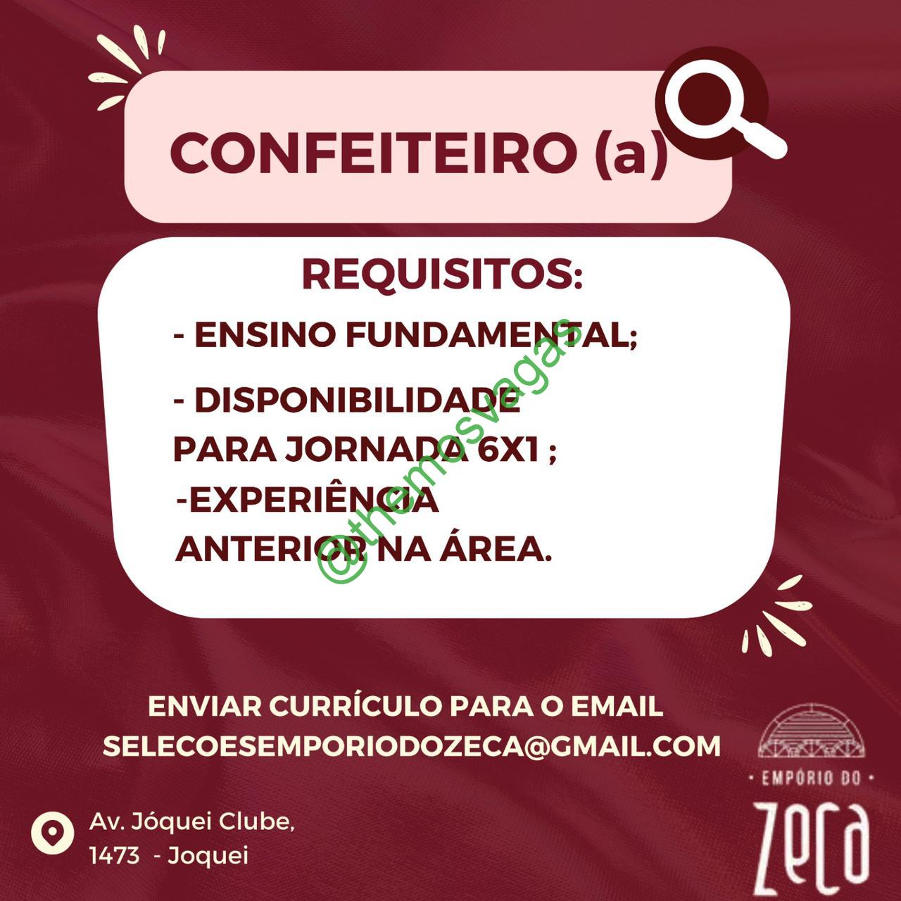 – Interessados(as) e que atendam ao perfil solicitado acima, devem enviar o currículo para o e-mail selecoesemporiodozeca@gmail.com contendo no título/assunto “Confeiteiro(a) – THE“.