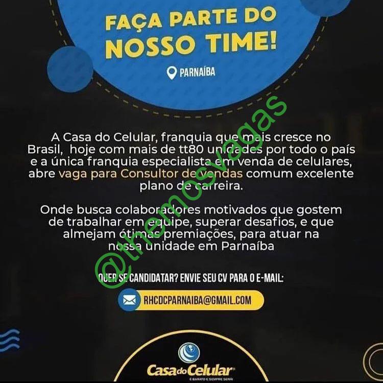 – Interessados(as) e que atendam ao perfil solicitado acima, devem enviar o currículo para o e-mail rhcdcparnaiba@gmail.com, contendo no título/assunto “Consultor de Vendas PHB“.