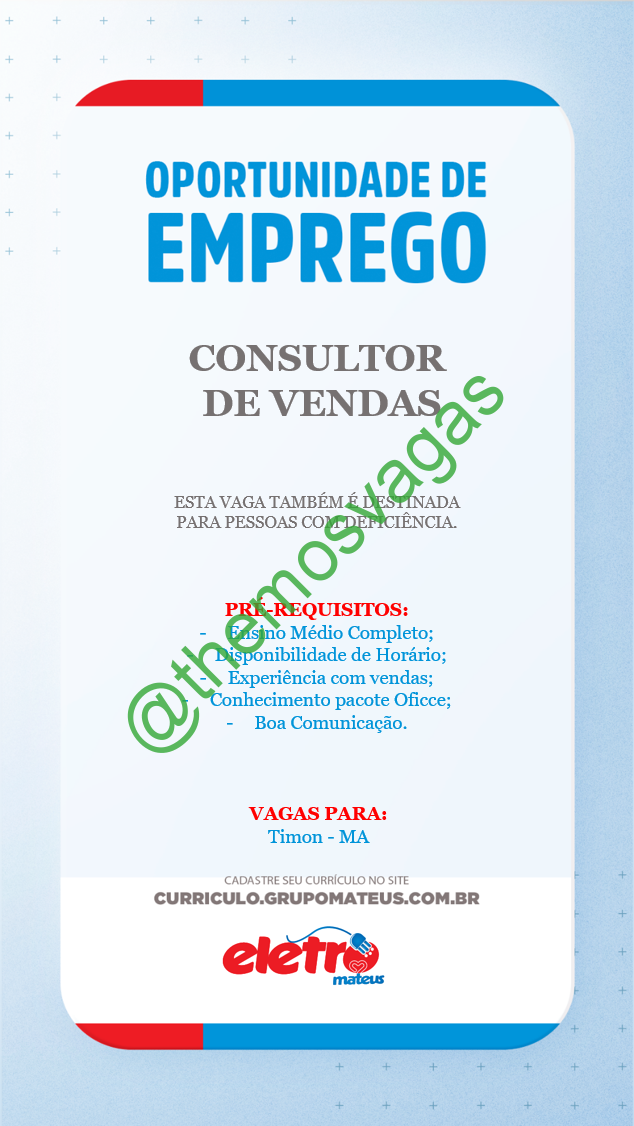 Consultor de Vendas | Timon – MA | 01 vaga(s)