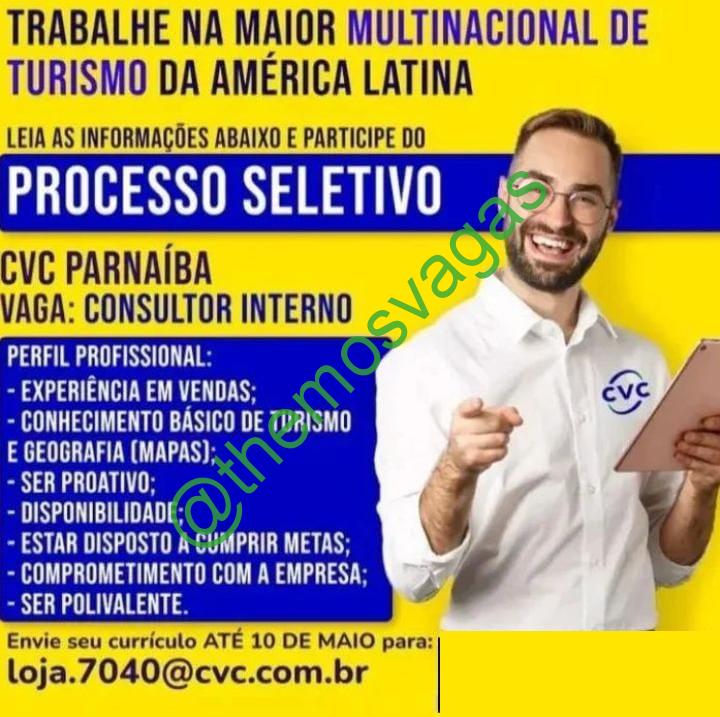 – Interessados(as) e que atendam ao perfil solicitado acima, devem enviar o currículo até 10/05/2022  para o e-mail loja.7040@cvc.com.br contendo no título/assunto “Consultor Interno