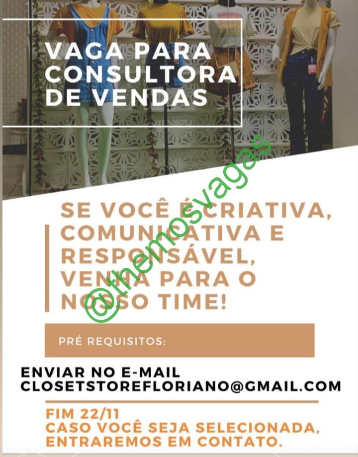 – Interessados(as) e que atendam ao perfil solicitado acima, devem enviar o currículo até 22/11/2019 para o e-mail closetstorefloriano@gmail.com contendo no título/assunto “Consultora de Vendas“.