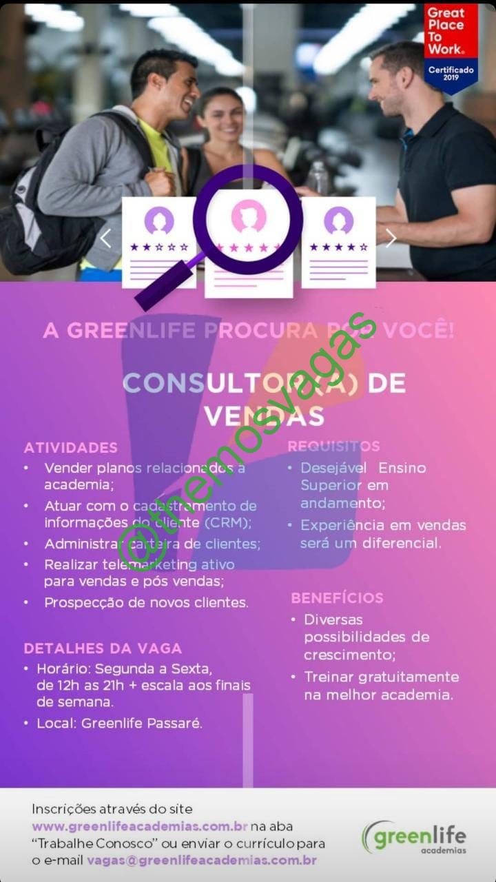 – Interessados(as) e que atendam ao perfil solicitado acima, devem enviar o currículo para o e-mail vagas@greenlifeacademias.com.br, contendo no titulo/assunto “Consultora de Vendas – FOR”  e cadastrar na plataforma de cadastro do site.