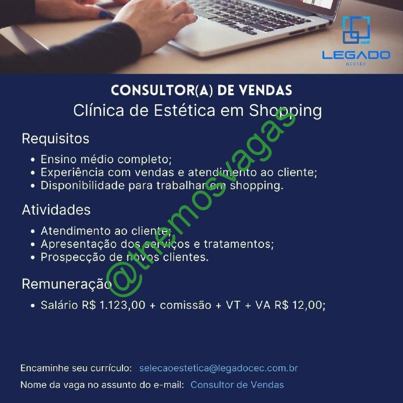 – Interessados(as) e que atendam ao perfil solicitado acima, devem enviar o currículo para o e-mail selecaoestetica@legadocec.com.br, contendo no titulo/assunto “Consultor(a) de Vendas – FOR