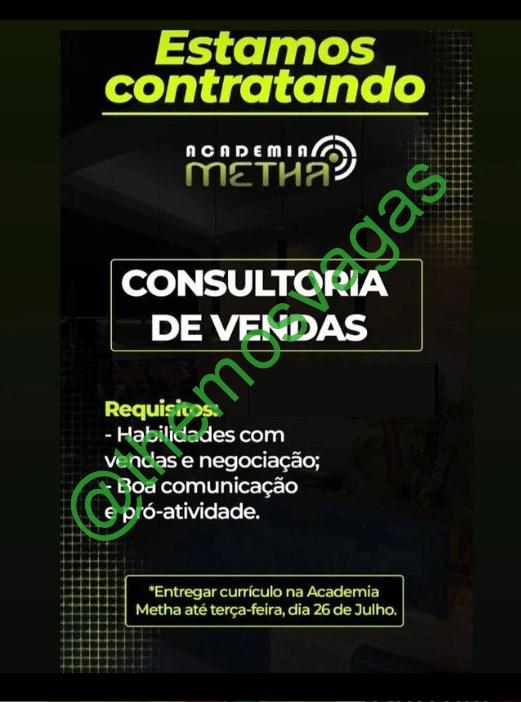 – Interessados(as) e que atendam ao perfil solicitado acima, devem entregar o currículo até 26/07/2022  na Academia Metha em Parnaíba/PI.