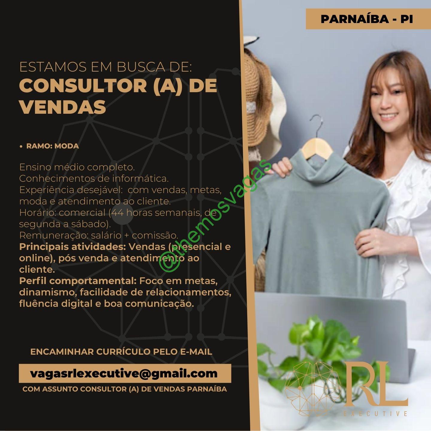 – Interessados(as) e que atendam ao perfil solicitado acima, devem enviar o currículo para o e-mail vagasrlexecutive@gmail.com contendo no título/assunto “Consultor(a) de Vendas Parnaíba