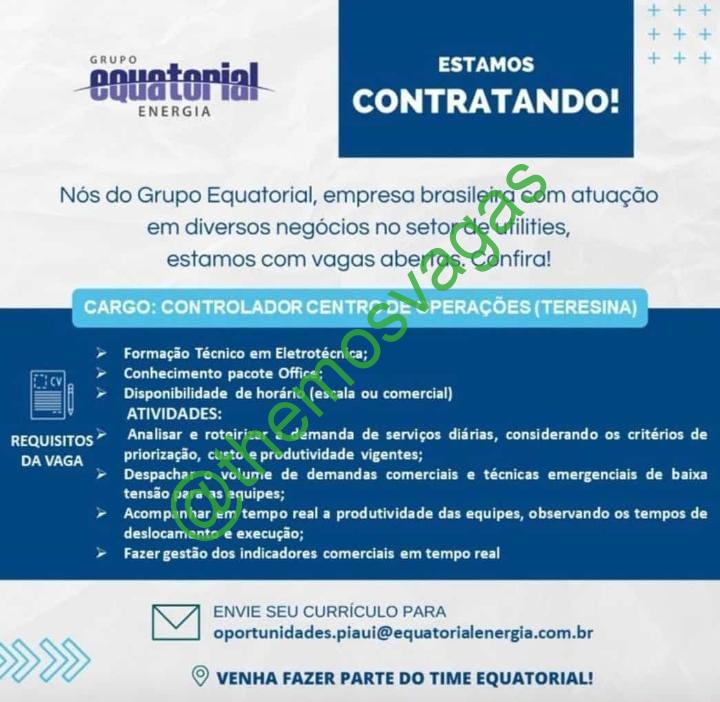 – Interessados(as) e que atendam ao perfil solicitado acima, devem enviar o currículo para o e-mail oportunidades.piaui@equatorialenergia.com.br contendo no título/assunto “Controlador Centro de Operações – THE“.