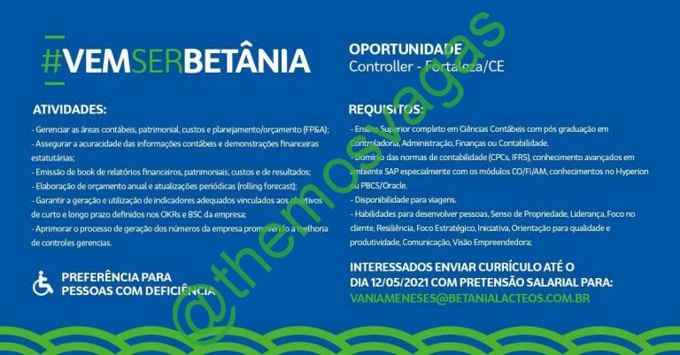 – Interessados(as) e que atendam ao perfil solicitado acima, devem enviar o currículo até 12|05|2021 para o e-mail vaniameneses@betanialacteos.com.br contendo no título/assunto “Controller – FOR“.