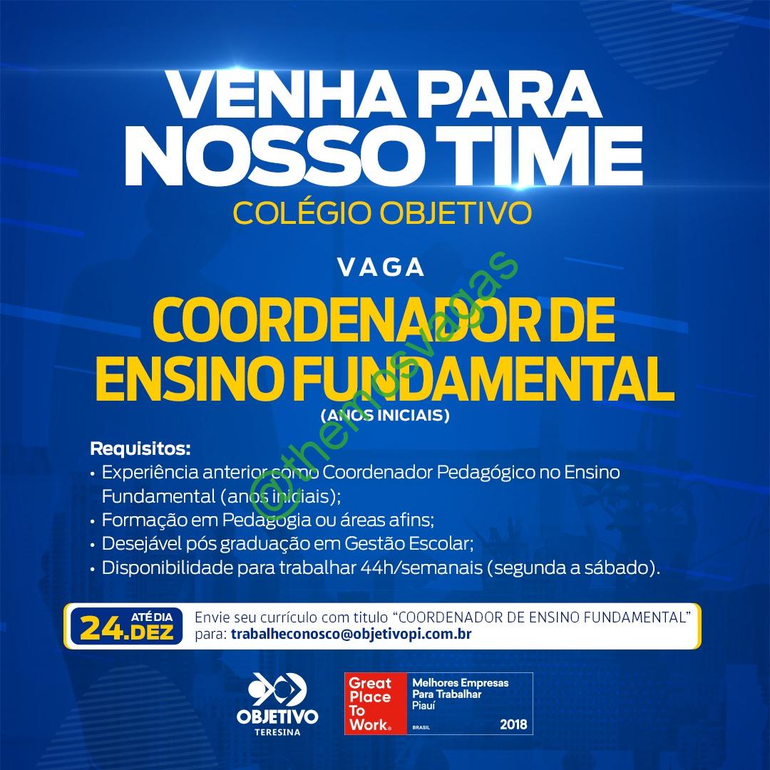 – Interessados(as) e que atendam ao perfil solicitado acima, devem enviar o currículo até 24/12/2021 para o e-mail trabalheconosco@objetivopi.com.br, contendo no título/assunto “Coordenador de Ensino Fundamental“.