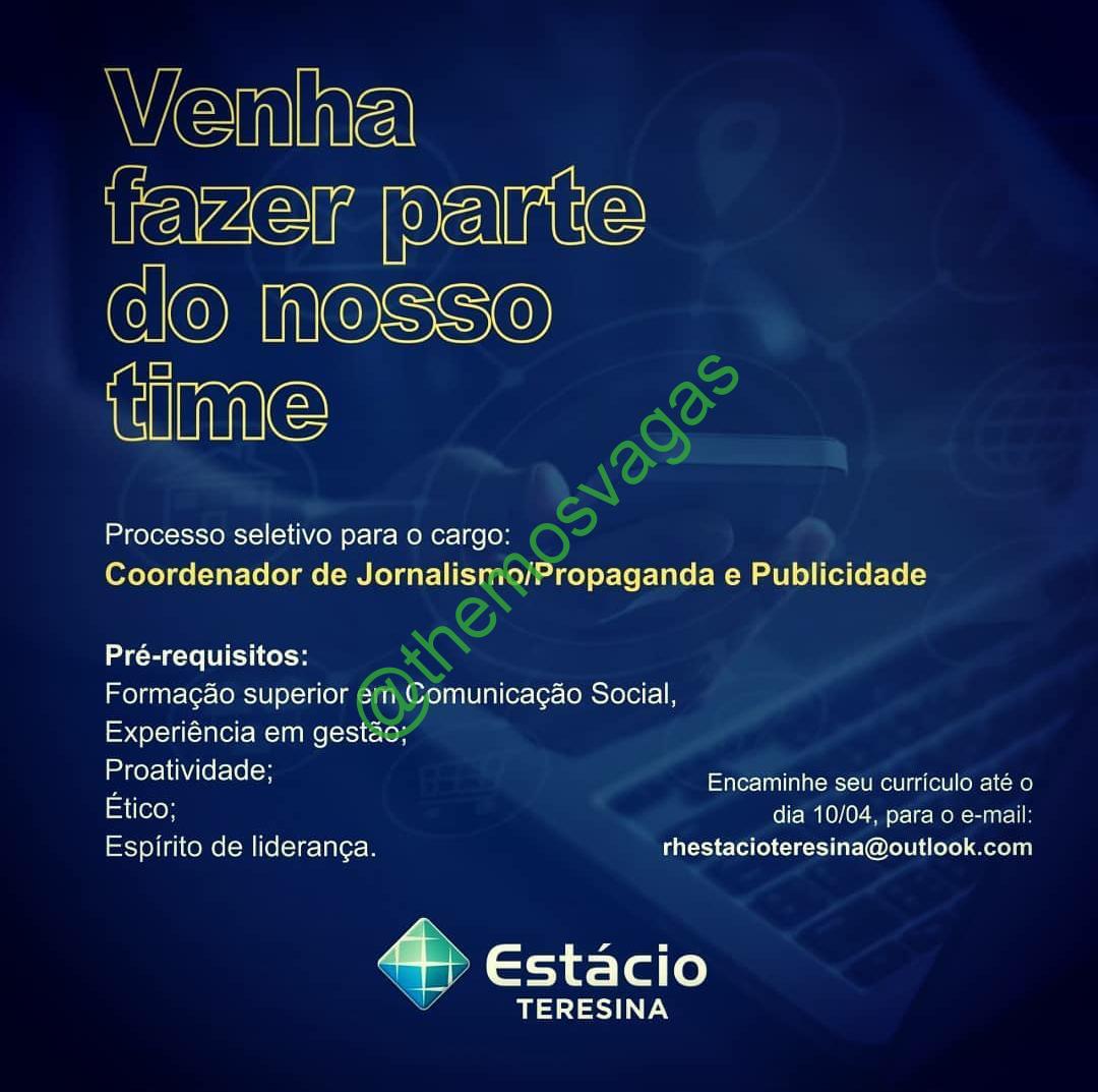 – Interessados(as) e que atendam ao perfil solicitado acima, devem enviar o currículo até 10/04/2021 para o e-mail rhestacioteresina@outlook.com contendo no título/assunto “Coordenador de Jornalismo THE