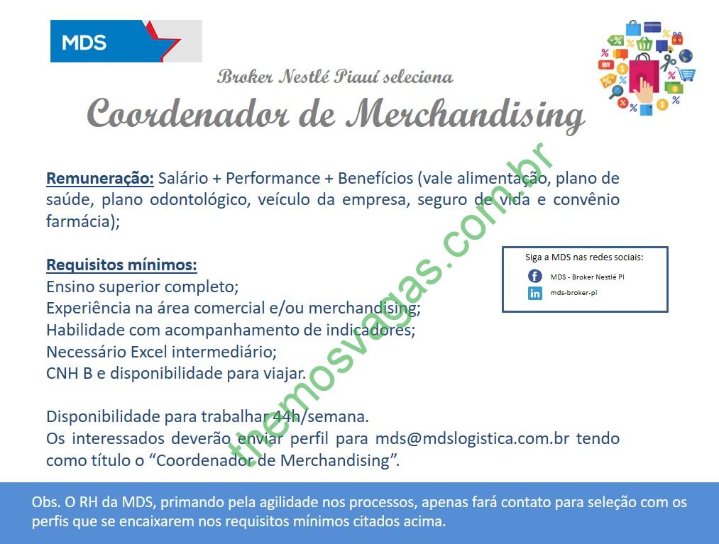 Interessados(as) e que atendam aos requisitos exigidos na imagem acima devem enviar o currículo, contendo no título/assunto do e-mail “Coordenador de Merchandising”, para mds@mdslogistica.com.br .