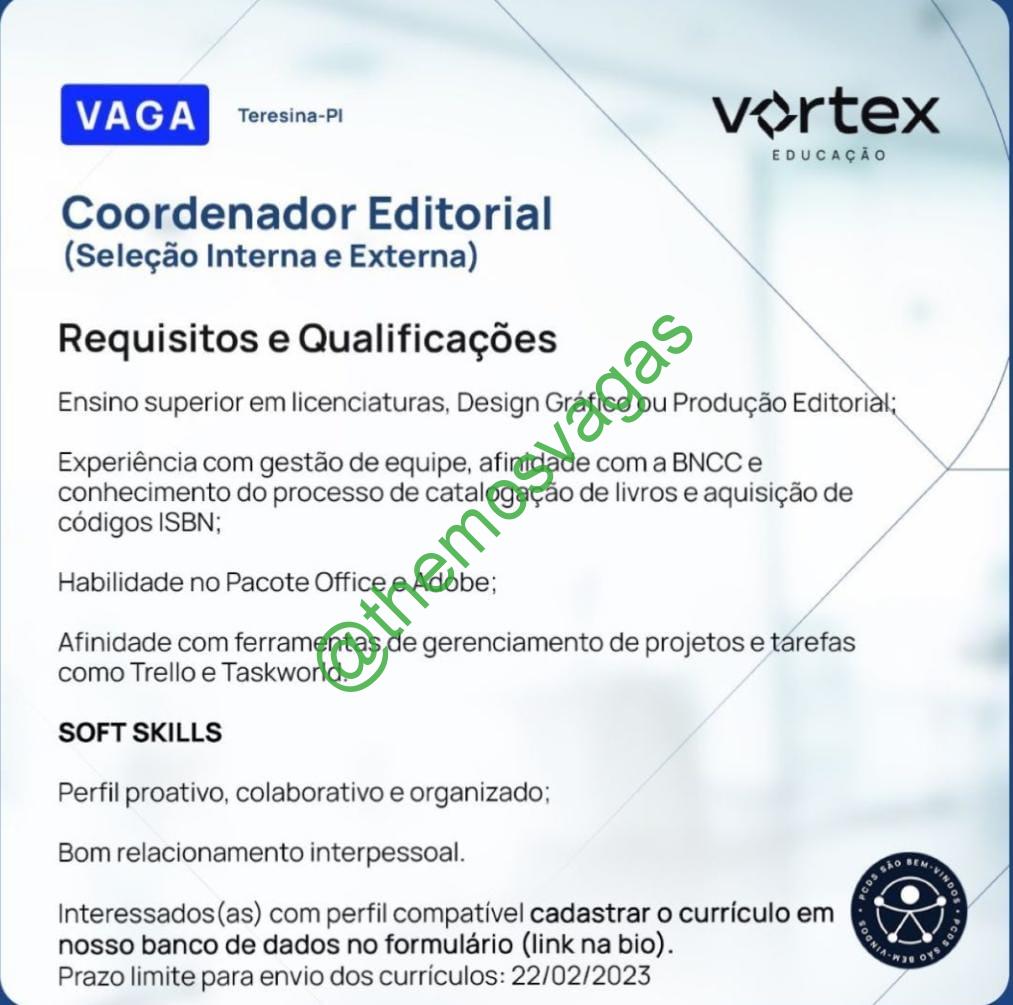 Coordenador Editorial | Teresina – PI | 01 vaga(s)