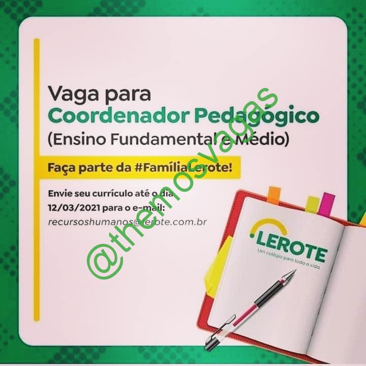 – Interessados(as) e que atendam ao perfil solicitado acima, devem enviar o currículo até 12/03/2021 para o e-mail recursoshumanos@lerote.com.br contendo no título/assunto “Coordenador Pedagógico  THE