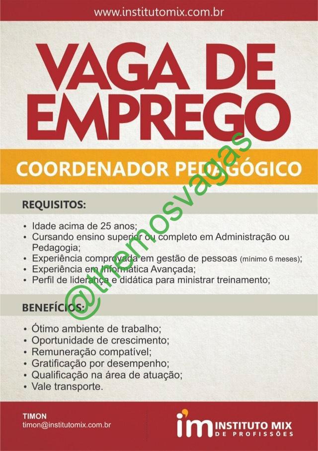 – Interessados(as) e que atendam ao perfil solicitado acima, devem enviar o currículo para o e-mail timon@institutomix.com.br contendo no título/assunto “Coordenador Pedagógico Timon
