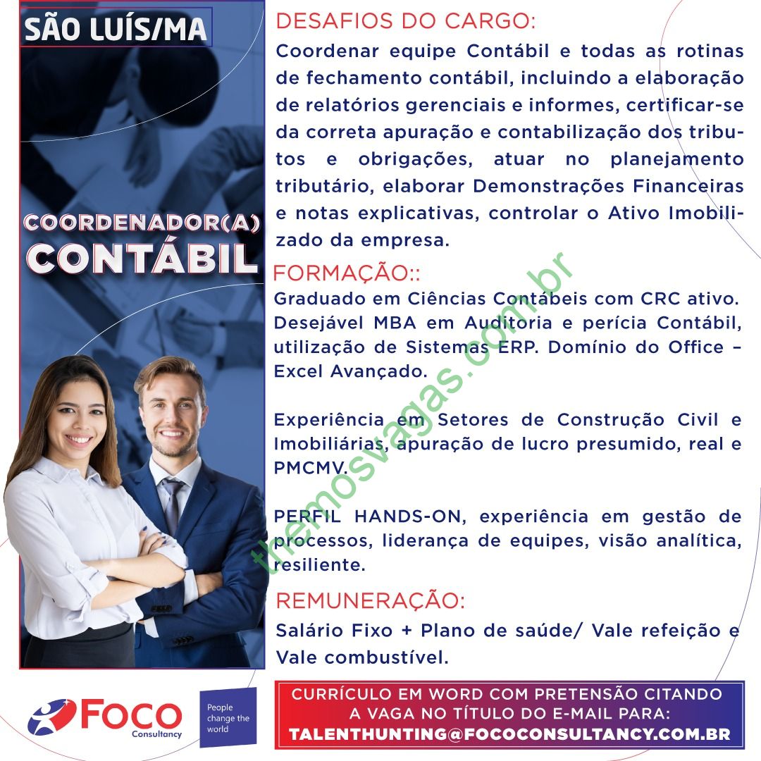 – Interessados(as) e que atendam aos requisitos devem enviar o perfil profissional, colocando no título do e-mail “Coordenador(a) Contábil”, para: talenthunting@fococonsultency.com.br