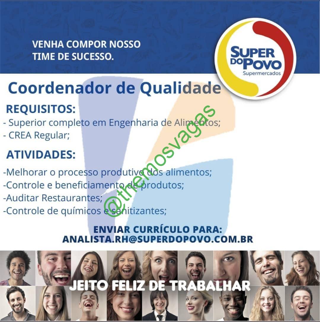 – Interessados(as) e que atendam ao perfil solicitado acima, devem enviar o currículo para o e-mail analista.rh@superdopovo.com.br, contendo no titulo/assunto “Coordenador(a) de Qualidade – FOR