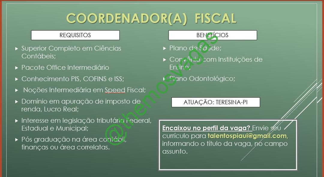 Coordenador(a) Fiscal / 01 vaga(s) / Teresina – PI