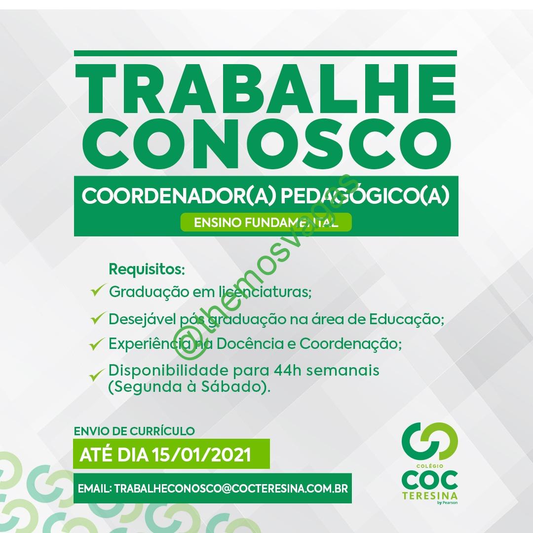 – Interessados(as) e que atendam ao perfil solicitado acima, devem enviar o currículo até 15/01/2021 para o e-mail trabalheconosco@cocteresina.com.br contendo no título/assunto “Coordenador(a) Pedagógico(a)  Ensino Fundamental THE