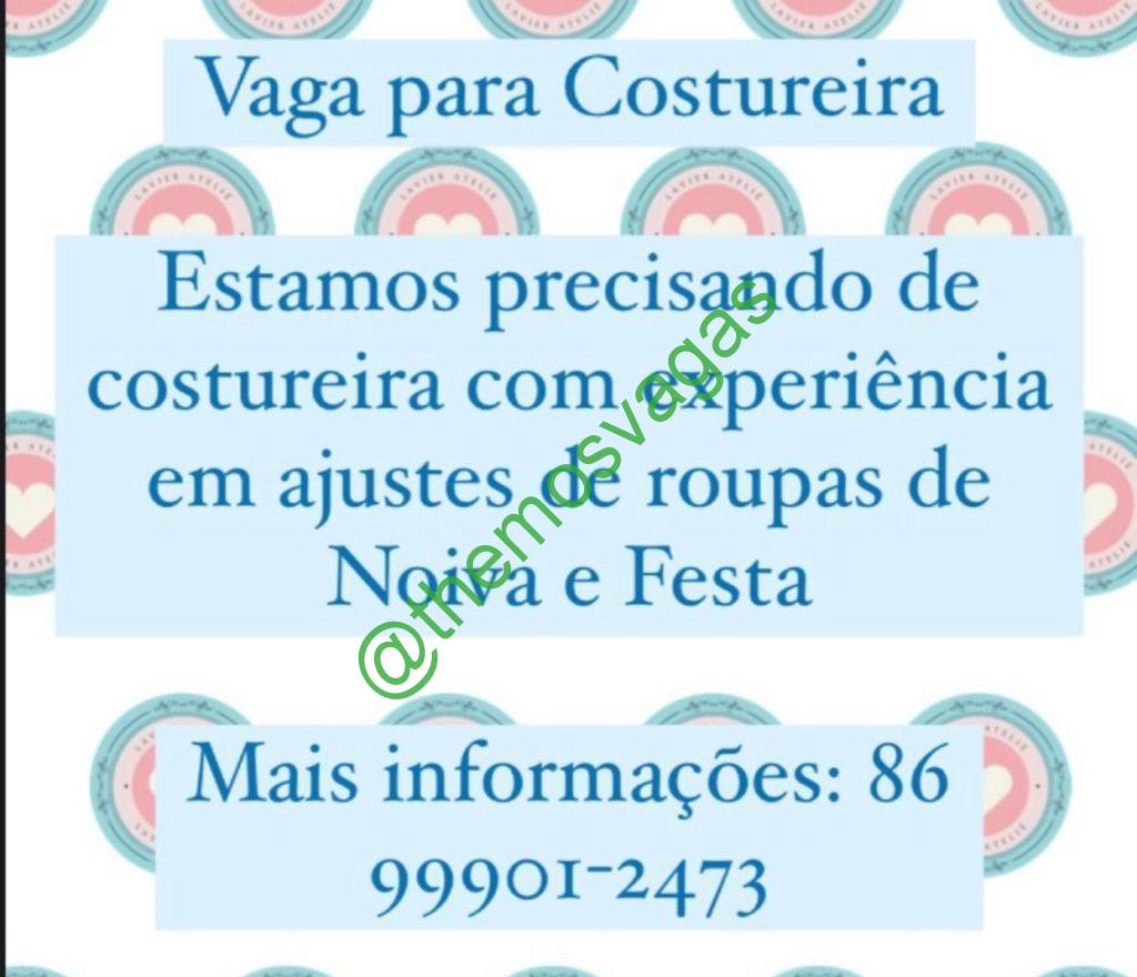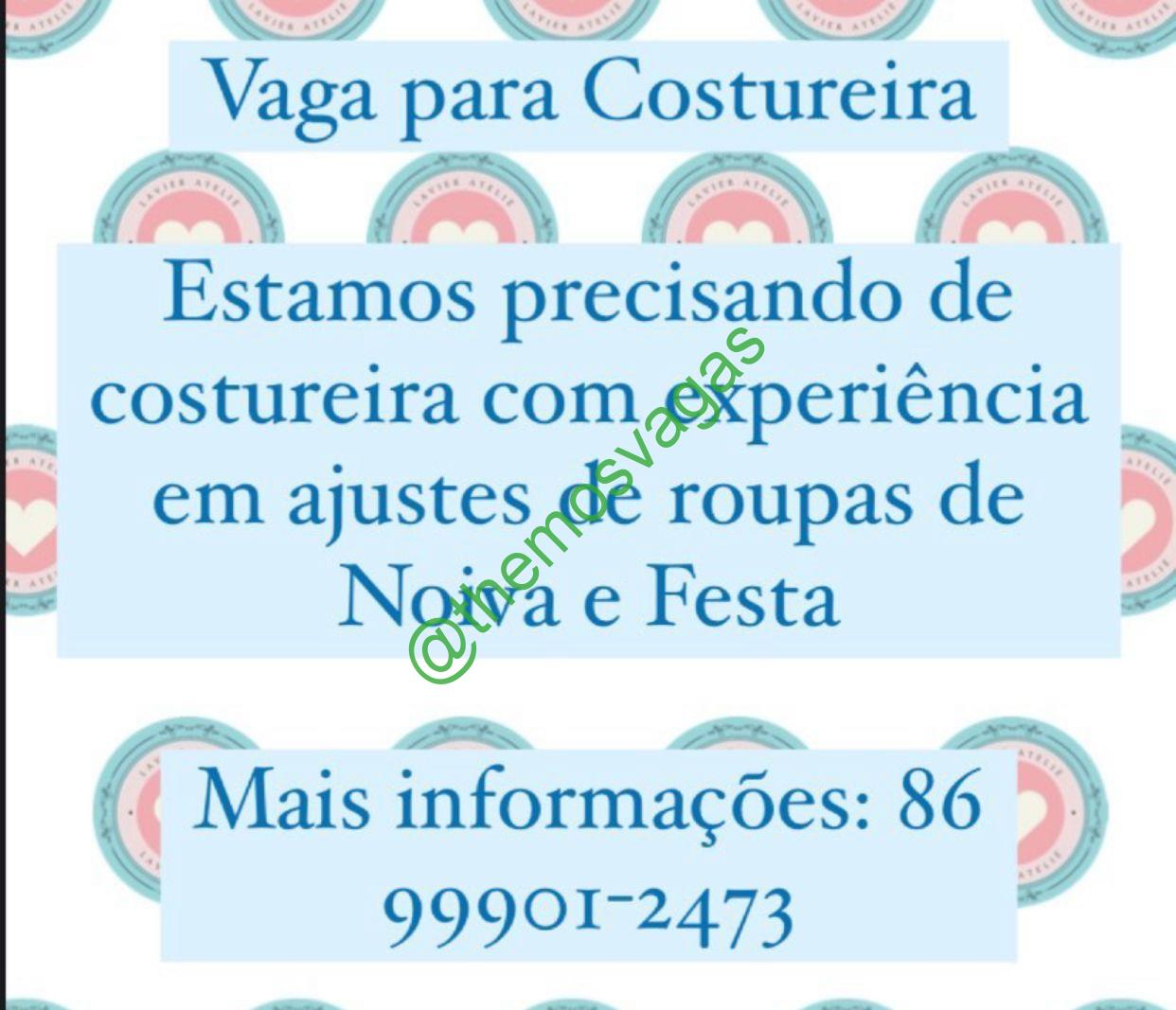 – Interessados(as) e que atendam ao perfil solicitado acima, devem enviar o currículo através do whatsapp 86 9901-2473 informando que pretende concorrer para a vaga de  “Costureira”  .